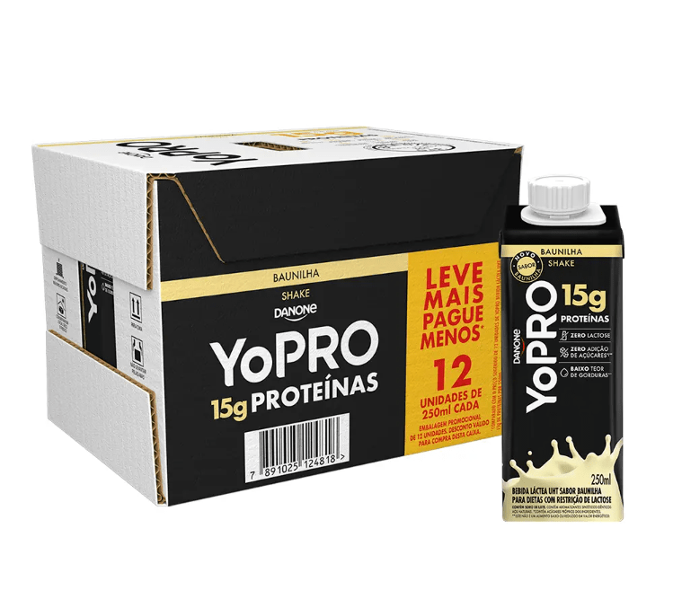 YoPro Shake Baunilha é uma bebida láctea UHT da Danone, ideal para quem busca uma opção prática e saborosa de lanche proteico.